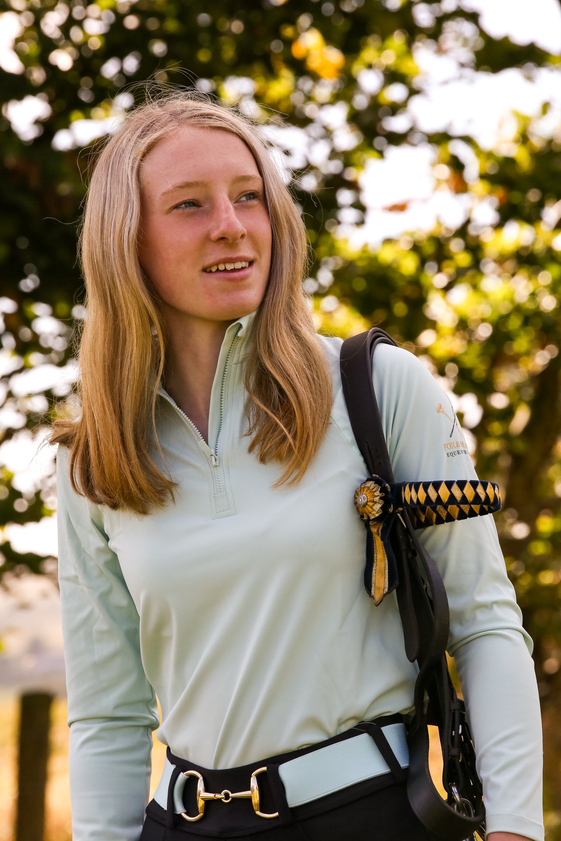 Ride in comfort with our long sleeve 3/4 zip baselayer, designed for equestrians. The lightweight, breathable fabric wicks away moisture to keep you cool and dry, while the second-skin fit moves with you in the saddle. Perfect for pairing with breeches and a belt for a sleek schooling look, or for wearing around the yard, this versatile piece is a staple for every rider’s wardrobe.